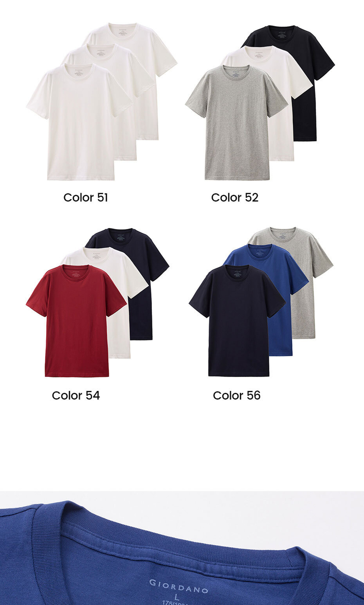 3pcs solid color short sleeve tee