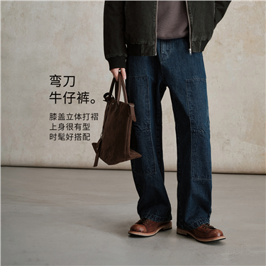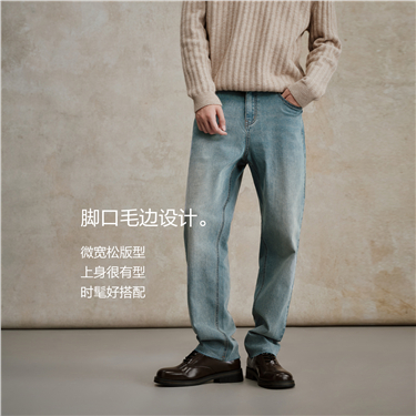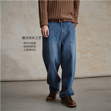 【Online Exclusive】 Men's Mid-Rise Loose Fit Washed Denim Jeans