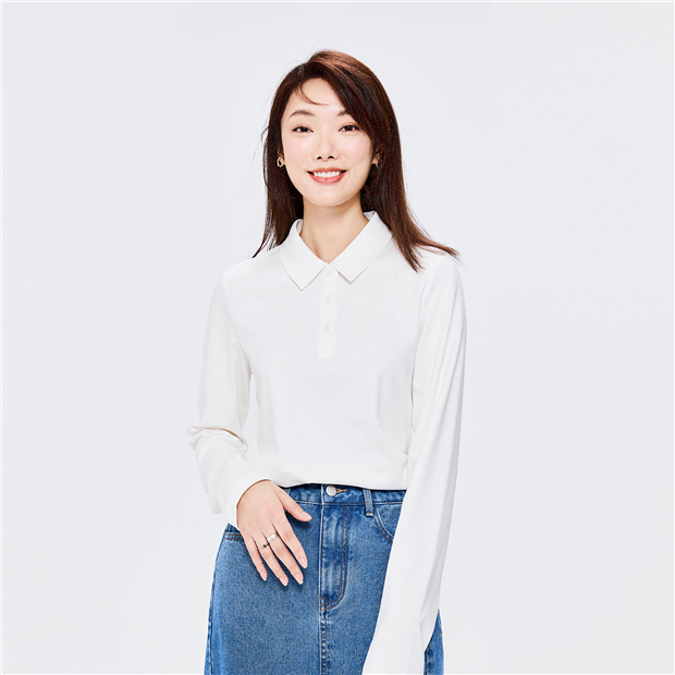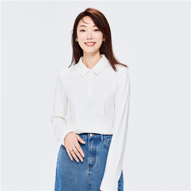 100% Cotton solid color long sleeve polo shirt